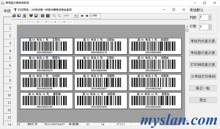 考试座次表安排助手,支持新高考选科走班,根据用户需求提供全自动考场编排、各考场学生座次表、各班学生考场分布、各考场学生条码打印等功能,为您提高工作效率,避免工作出错烦恼,适于各级中小学教务管理使用。考场座次表安排助手提供免费升级服务,随时都可以免费下载使用。欢迎免费下载